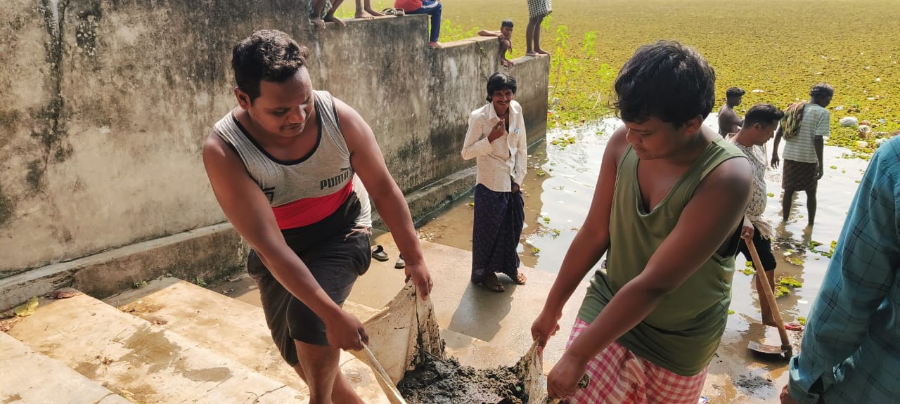 The program emphasized community ownership and participatory action, encouraging villagers to actively take part in the cleaning process rather than relying solely on external support. Local residents, youth volunteers, and members associated with Lifegraph Foundation Trust came together to manually remove excessive aquatic vegetation, sludge, and waste deposited along the pond bed, steps, and embankment areas. Special attention was given to clearing water inflow and outflow points to ensure smooth circulation and prevent future stagnation.